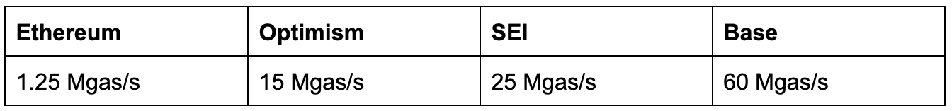 Base’s efforts are commendable, they are leading the way with 60 Megagas, about 400 Univ3 swaps, or 1200 ERC20 transfers per second.